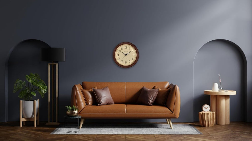 The Bulova C5004 Atomic Time Wall Clock features a solid hardwood case finished in a warm brown cherry stain, accented by a polished gold-tone bezel and a cream dial with bold black numerals for excellent readability. An accurate quartz movement automatically synchronizes with the Atomic Time signal to maintain precise time without manual adjustments for daylight saving. A convex glass lens protects the dial while adding durability, making this clock suitable for home, office, or commercial environments. Uses (1) AA battery (not included).