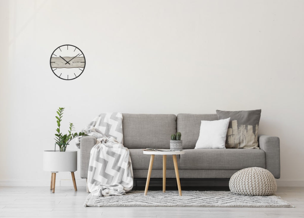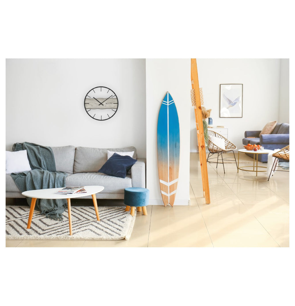 The Driftwood wall clock features a 16" wrought iron case that frames a solid piece of “live edge” wood finished in a light gray washed stain, creating a striking blend of rustic and industrial style. Minimalist hour markers and sleek hands provide a clean, modern contrast, while accurate quartz movement ensures reliable timekeeping. Designed as an ideal accent piece, this clock adds warmth and texture to any living space. Uses (1) AA battery (not included).