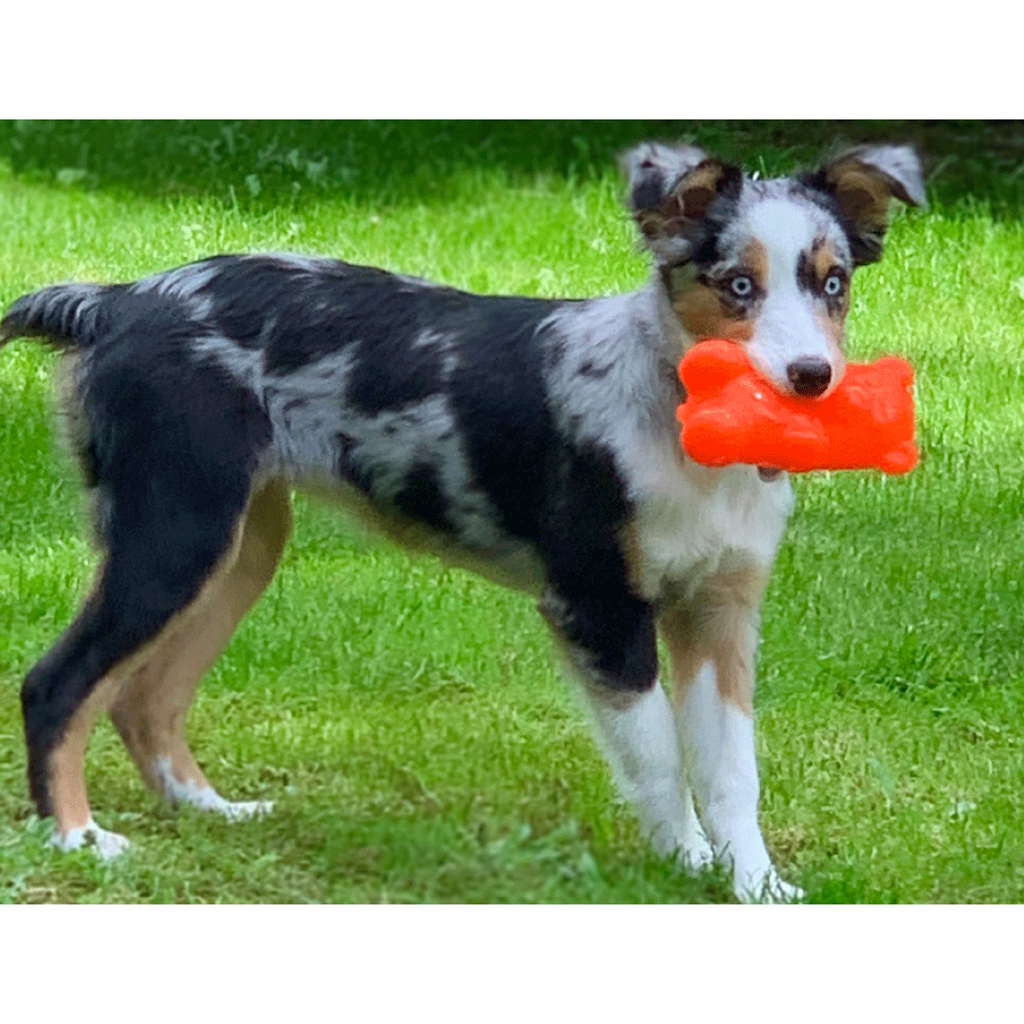 Ruff Dawg's sweet and silly giant Gummy Bear is a bouncy retrieving toy for dogs of all sizes that’s gentle on teeth and gums. Gummy Bear can be filled with treats or strung on a rope. In assorted bright and neon colors. Makes a cute photo prop!